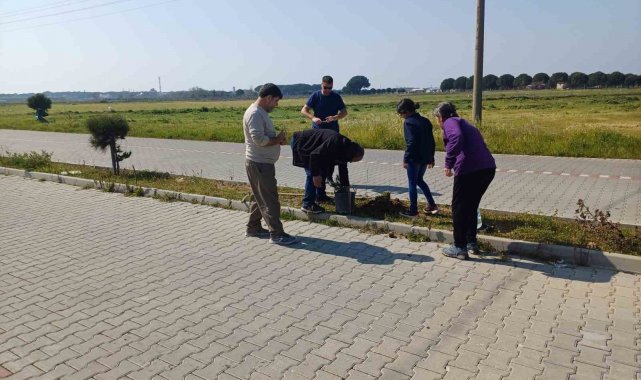 Ayvalık'ın en büyük mahallesi Altınova'da Çöplüğün Altın Çocukları topluluğu, yol üzerindeki refüjlerde kuruyan ağaçların yerine fidan dikti.