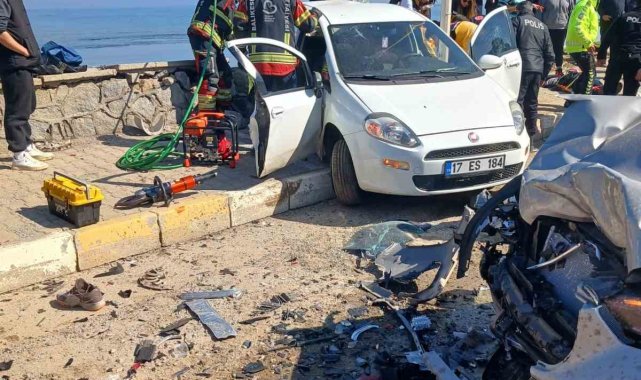 Ayvalık'ta iki araç çarpıştı 2'si ağır 6 kişi yaralandı