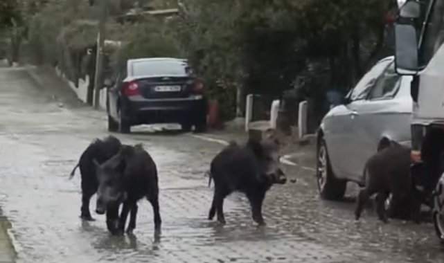 Hiç kimseye zarar vermeden Son Durak mevkiinde çöp konteynerlerinin çevresinde, park halindeki araçların arasında yiyecek arayan yaban domuzlarının görüntüleri sosyal medya mecralarında da adeta viral oldu.