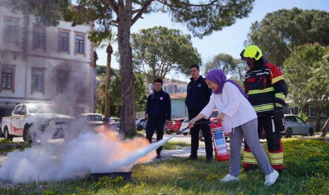 Bu kapsamda Ayvalık Belediyesi çalışanlarına da yangın tatbikatı yaptırıldı. Personelin aktif katılım sağladığı eğitimlerde, yangın anında doğru müdahale yöntemleri birebir uygulanarak muhtemel risklere karşı farkındalık artırıldı.
