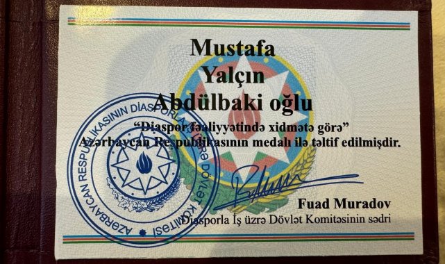 Talas Belediye Başkanı Mustafa Yalçın'ın Türkiye-Azerbaycan ilişkilerinin gelişimine yönelik atılan adımlar madalya getirdi. Başkan Yalçın, Azerbaycan hükumeti tarafından 'Hizmet Madalyası' ile taltif edildi. Başkan Yalçın ödülünü, Azerbaycan'ın başkenti Bakü'de düzenlenen törenle Diaspora Bakanı Fuad Muradov'dan aldı.