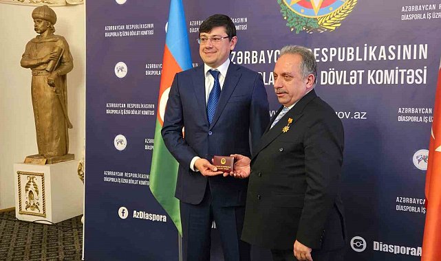 Azerbaycan'dan Başkan Yalçın'a hizmet madalyası