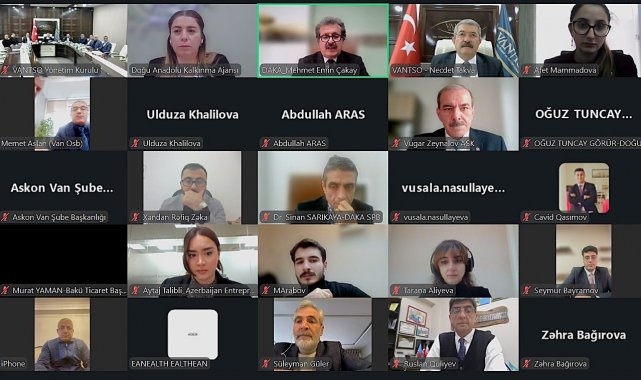 Online olarak gerçekleşen toplantıya; Van TSO Yönetim Kurulu Başkanı Necdet Takva, Yönetim Kurulu Üyeleri, DAKA Girişimcilik ve Turizm Politikaları Birim Başkanı Mehmet Emin Çakay, Azerbaycan Bakü Ticaret Başmüşaviri Murat Yaman, Azerbaycan Sahibkarlar (İşadamları) Konfederasyonu (ASK) Başkan Vekili Vugar Zelyanov, Van iş dünyası temsilcileri ve Azerbaycanlı iş insanları katılım sağladı. Toplantının açılışında konuşan Van TSO Başkanı Necdet Takva, "Bizim Azerbaycan halkı ile derin bağlarımız var. DAKA Genel Sekreter Vekilimiz Mehmet Emin Çakay konuşmasında o sürece ilişkin vurgular yaptı. Ayrıca Azerbaycan ile Türkiye arasında birçok fırsatın olduğu değerlendirmelerde bulundu. Ben biraz daha spesifik alanda Van'ın potansiyelleri üzerine kısa bir sunum yapmak istiyorum" dedi.