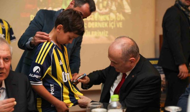 Konuşmaların ardından dernek yönetimi, Aziz Yıldırım'a günün anısına hediye takdim etti.