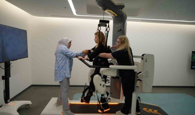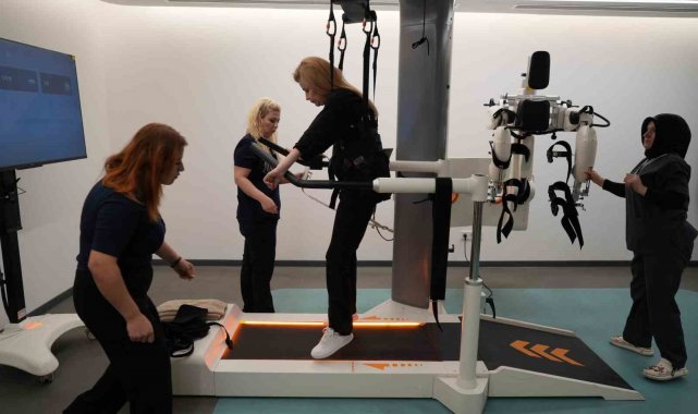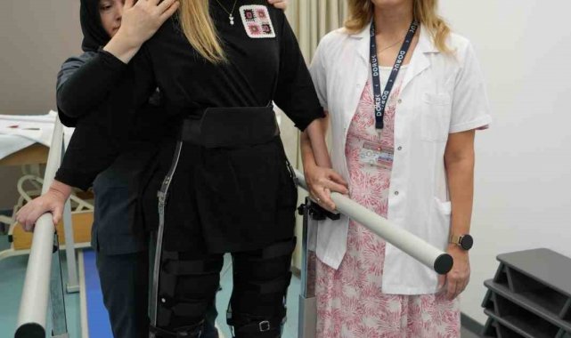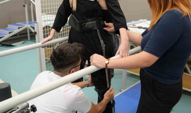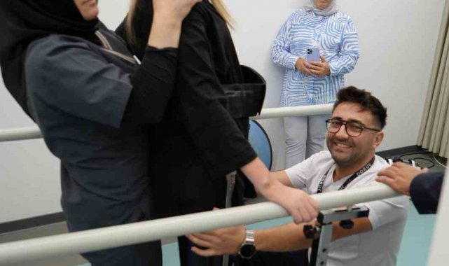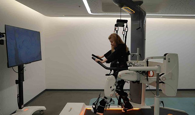 Yürümeye yardımcı robot ile yapay zeka destekli simülasyona bakarak yürüyüş yapan Karaburun, simülasyondaki yürüyüş yapan kız çocuğunun kendisine benzediğini bu sebeple bu simülasyonu tercih ettiğini söyledi.