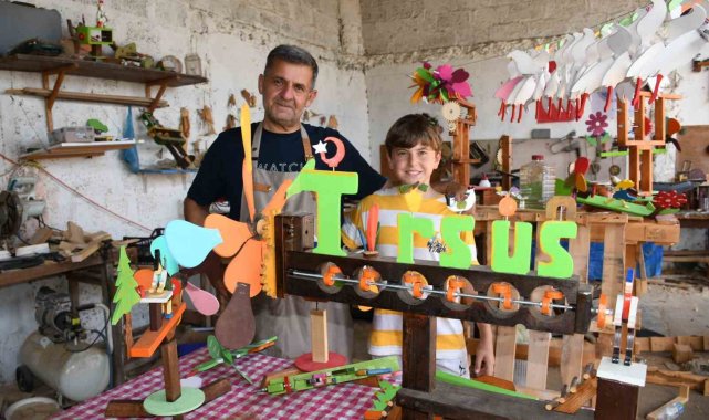 Mersin'in Tarsus ilçesinde baba ile oğlu ahşabı oyuncağa dönüştürerek, hem zararsız ürünler üretiyor hem de hayallerini gerçekleştiriyor.
