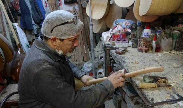 Baba yadigarı atölyede 35 yıldır bağlama üretiyor