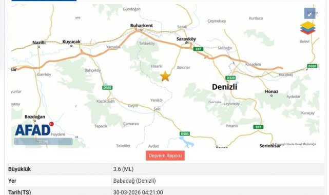 Afet ve Acil Durum Yönetimi Başkanlığından (AFAD) temin edilen verilerine göre, bu sabah saat 04.21 sıralarında merkez üssü Denizli'nin Babadağ ilçesine bağlı kırsal Demirli Mahallesi olan 3.6 büyüklüğünde orta şiddetli bir deprem meydana geldi. Yer kabuğunun 9,1 kilometre derinliğinde meydana gelen deprem Denizli ve Aydın'a bağlı ilçelerden hissedildi.