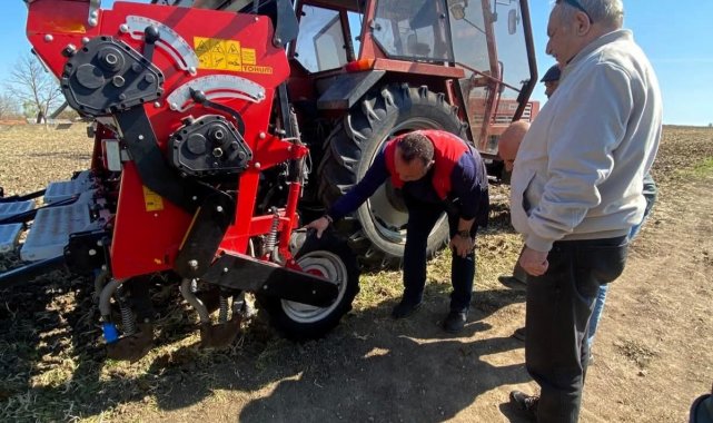 Kırklareli'nin Babaeski ilçesi Kadıköy köyünde ekim çalışmalarında aspir tohumları toprakla buluşturuldu.