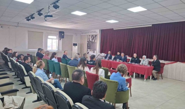 Toplantıda, ilçedeki okulların mevcut güvenlik durumu ele alınırken, kurumlar arası koordinasyonun artırılması ve bilgi alışverişinin güçlendirilmesi gerektiği vurgulandı. Kaymakam Tamer Orhan, okul müdürlüklerinin İlçe Milli Eğitim Müdürlüğü aracılığıyla diğer kurumlarla eşgüdüm içinde çalışmasının önemine dikkat çekti.