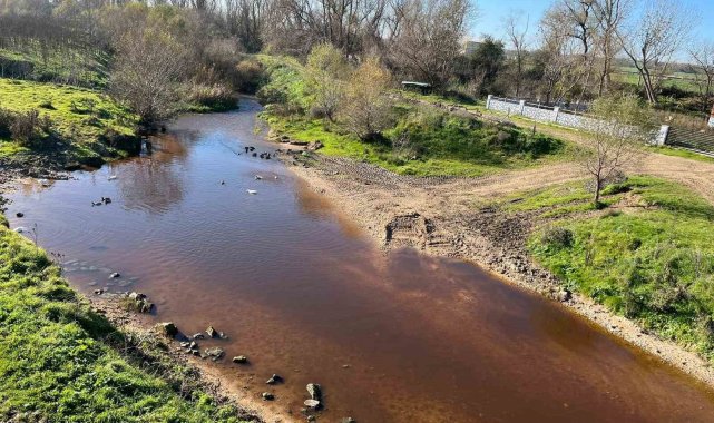 Kırklareli'nin Babaeski ilçesine bağlı Yeniköy'den geçen Şeytan deresinin rengi kahverengiye döndü.