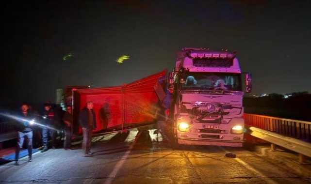Kırklareli'nin Babaeski ilçesinde meydana gelen kazada bir tır ile traktör köprü üzerinde çarpıştı.