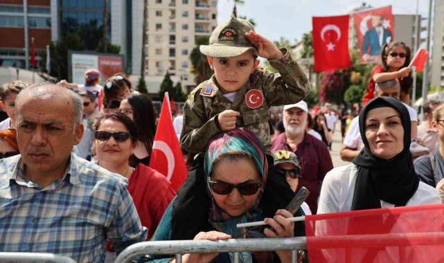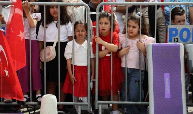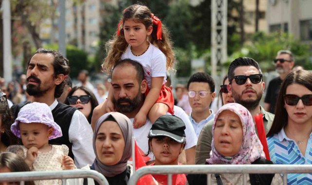 23 Nisan Ulusal Egemenlik ve Çocuk Bayramı Adana'da coşkuyla kutlandı. Törene katılan küçük çocuklar, babaların omzuna çıkıp töreni izledi.