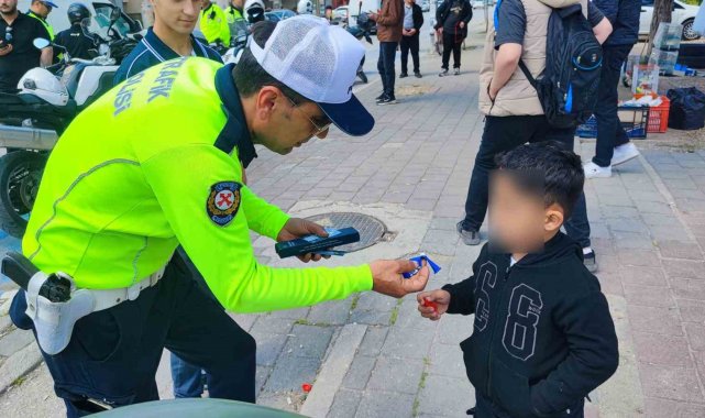 Denetimler sırasında ekiplerin dikkatini çeken bir olay yaşandı. Bir motosiklet sürücüsünün, fiziksel engelli oğlunu kask takmadan motosikletin ön kısmında taşıdığı görüldü. Polisi karşısında gören baba durdurulurken, yapılan incelemenin ardından sürücüye cezai işlem uygulandı. Ancak olay bununla sınırlı kalmadı. Trafik ekipleri, küçük çocuğu sevindirerek çeşitli hediyeler verdi. Polis ekipleri babaya, en ufak bir sarsıntıda çocuğun düşebileceğini belirterek daha dikkatli olması konusunda uyarılarda bulundu.
