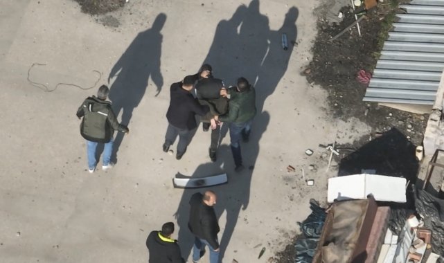 Kayseri'nin Melikgazi ilçesinde tartıştığı babasını bıçaklayarak öldüren şahıs, polis ekipleri tarafından bir işyerinin çatısında yakalandı. O anlar anbean görüntülendi.