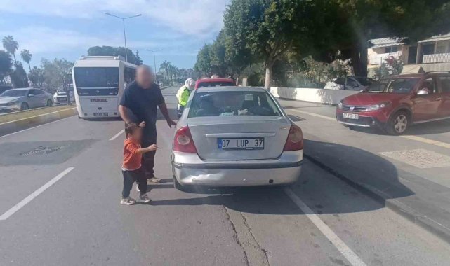 Antalya'nın Manavgat ilçesinde yayalara yol veren otomobile hafif ticari araç çarptı. Araçta bulunan ve kazayı yara almadan atlatan küçük çocuk, babasının elinden tutarak otomobilin hasarlı yerlerini gösterirken gözyaşlarına hakim olamadı.