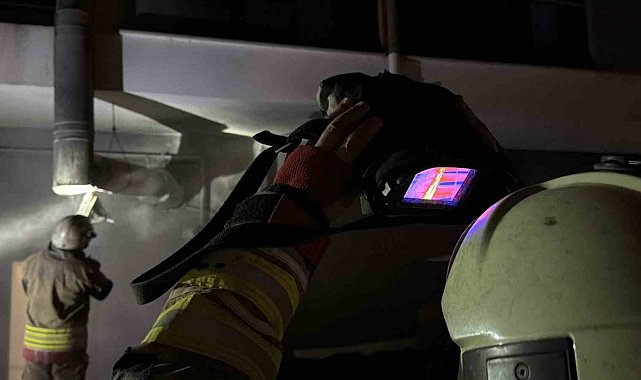 Düzce'de bir işletmenin bacasında çıkan yangına itfaiye ekipleri termal kamera ile müdahale etti.