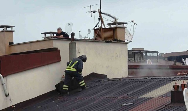 Olay, İlkadım ilçesi Zafer Mahallesi Şevketiye Caddesi'nde bulunan 4 katlı bir apartmanın çatısında saat 14.30 sıralarında meydana geldi. Baca kısmından yoğun şekilde çıkan dumandan endişelenen mahalle sakinleri durumu 112 Acil Çağrı Merkezi'ne bildirdi. Olay yerine çok sayıda itfaiye ve polis ekibi sevk edildi. Polis ekipleri, yakındaki okulun çıkış saati olması nedeniyle cadde üzerinde güvenlik önlemi alırken, Samsun Büyükşehir Belediyesi'ne bağlı itfaiye ekipleri de vinç ile dumanların yükseldiği çatıya çıktı.