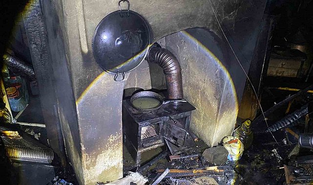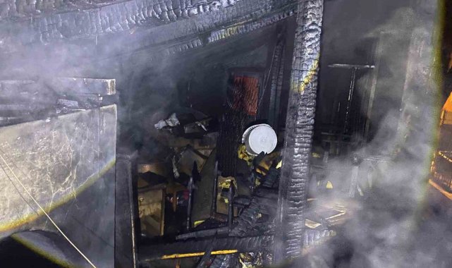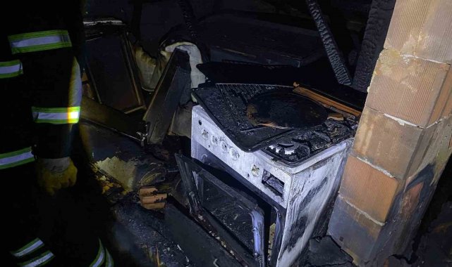Bacadan çıkan yangında ev tamamen yanarak kullanılamaz hale geldi