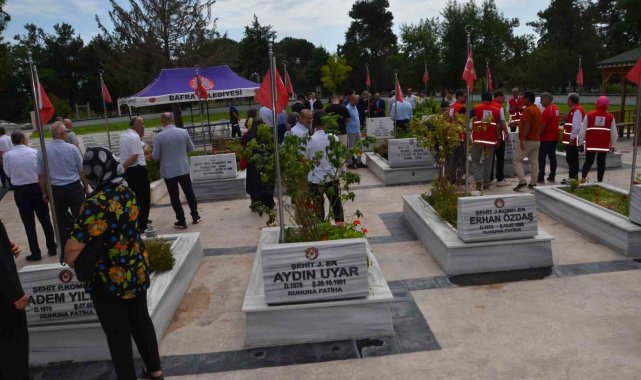 İlçe Müftülüğü'ne bağlı imam hatipler tarafından Kur'an-ı Kerim okunarak dualar edildi. Yapılan duanın ardından protokol üyeleri ve vatandaşlar, şehitlerin kabirlerine karanfil bırakarak dua etti.