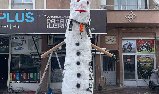 Bafra'da esnaftan 4,2 metrelik dev kardan adam