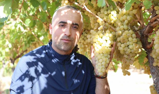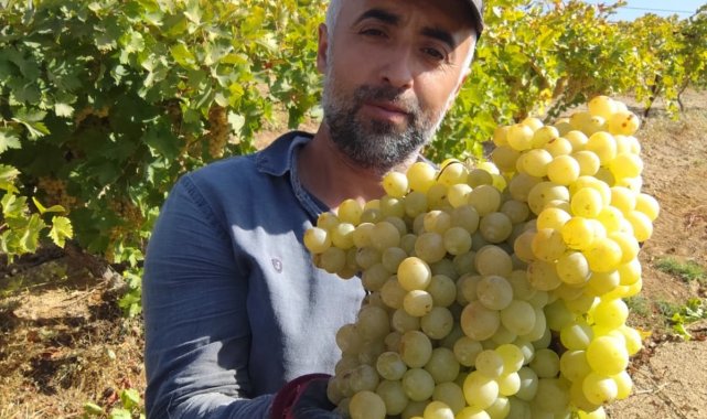 Sezonun en büyük üzüm salkımını topladıklarını belirten Necip Ekinci, "Üzüm yetiştiriciliği yapıyoruz. Bölgesel olarak üzüme elverişli olan topraklardayız. Ağın cinsi üzüm üretmekteyiz. Dönem olarak bu yıl don olayından etkilendik. Bahar ayında yaşadığımız dondan dolayı hem kalitemiz düştü hem tonaj olarak da verimimiz düştü. Yani her yıl yüzde 100 aldığımız ürün oranını, bu sene yüzde 35 ile 40 oranında almaktayız. Ama şu anda yine memnunuz. Fiyatlarımız şu anki güncel ortamda güzel. Bölgemizin, su kaynaklı problemleri oluyor. Topraklarımız suya elverişli bir toprak değil. Salkım, bu sene rekor olarak 4 kilo 700 gram geldi. O da bu senenin en büyük salkımı, diyebiliriz. Genel olarak salkım kilo ağırlıkları 1 kilogram ile 2 kilogram arasında olan çok oluyor ama en büyük salkımımız 4 kilo 700 gram geldi" dedi.