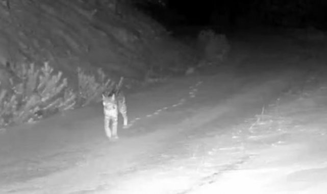 Çankırı'da fotokapan kameralarına takılan görüntülerde, bağ evine girmeye çalışan sansar ve nesli tehlike altındaki vaşak doğal yaşamı içinde kaydedildi.
