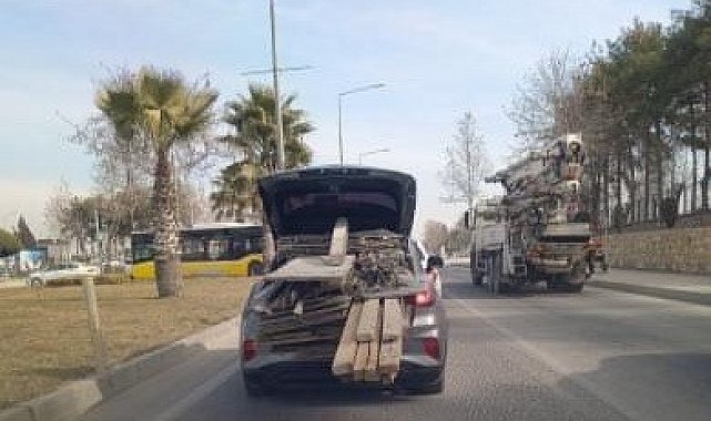 Adıyaman'da bir kişi, otomobilinin bagajına yüklediği tahtalarla trafiği tehlikeye attı.