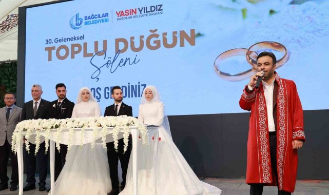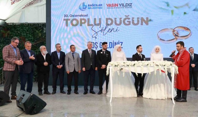 Bağcılar Belediyesi'nce bu sene 30'uncusu düzenlenen toplu düğün şöleninde 8 çift dünyaevine girdi. Ticaret Bakanı Ömer Bolat'ın şahitliğini yaptığı çiftlerin nikahını ise Bağcılar Belediye Başkanı Yasin Yıldız kıydı. Atılan imzalarla birlikte bugüne kadar toplu nikahla evlenenlerin sayısı 2 bin 290 oldu.
