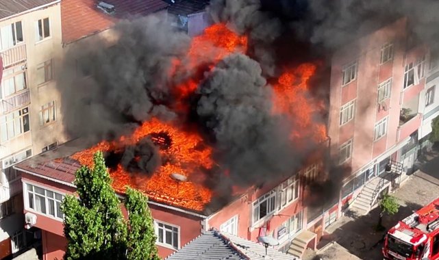 Bağcılar'da 2 katlı binanın çatı katında yangın çıktı. Alevler, yan binaya sirayet ederken, yangın itfaiye ekiplerinin müdahalesiyle kontrol altına alındı.
