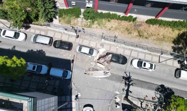 Kaçak atölyede yaşanan patlamanın şiddeti, havadan çekilen görüntülerde gözler önüne serildi. Patlamanın yaşandığı atölyeden fırlayan buhar kazanına ait dev parçalarının 5 katlı binayı aşarak diğer sokaktaki araçların üzerine düştüğü görüldü. Parçaların düştüğü alanın hemen yanında bir okul bulunması da dikkat çekti.