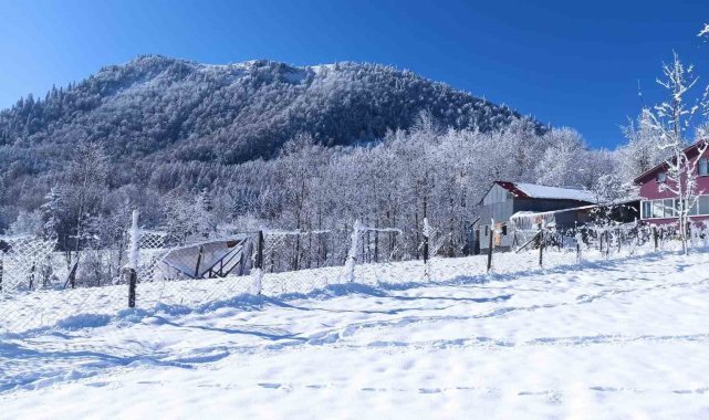 Sakarya'nın yüksek kesimlerinde bahar ayında yağan kar kartpostallık görüntüler oluşturdu.
