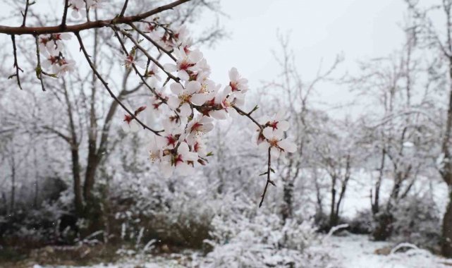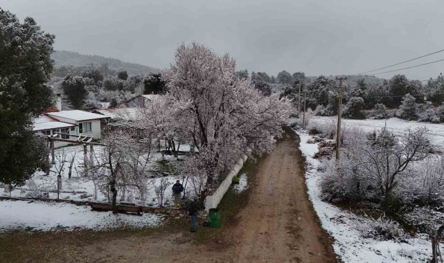 Meteorolojinin soğuk hava uyarısının ardından Muğla'nın Menteşe ilçesinde kar yağışı başladı. İlçenin yüksek kesimlerinde yer alan Göktepe mevkisinde sabah saatlerinde etkili olan kar yağışı, doğayı beyaza bürüdü. Bahar mevsimi ile beyaz çiçeklerine kavuşan ağaçlar, kar yağışı ile bir daha beyaza büründü.