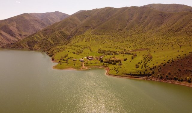 Baharın gelişiyle Keban Baraj Gölü'nde eşsiz manzara