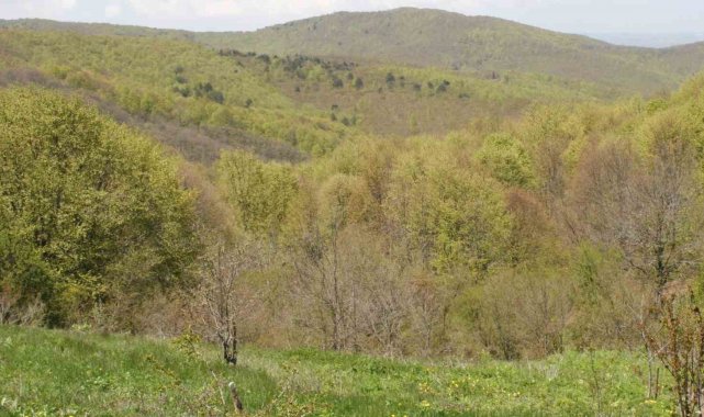 Bilecik'in Bozüyük ilçesine bağlı Çamyayla köyünde bulunan ormanlık alanlar baharın gelmesiyle birlikte renk cümbüşüne dönüştü.