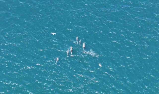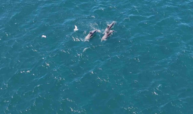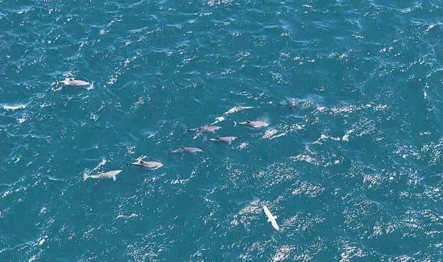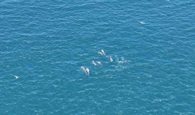 Sarayburnu açıklarında, İstanbul Boğazı girişinde su yüzeyine çıkan yunuslar, adeta görsel bir şölen sundu. Dron kamerasına yansıyan görüntülerde, yunusların dans edercesine suyun üzerinde sıçrayarak ilerlediği anlar izleyenleri mest etti.
