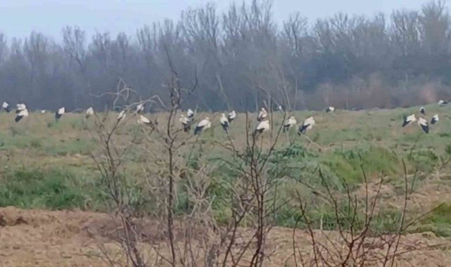 Yüzlerce leyleğin konakladığı Altınyazı Ovası'ndaki bu görüntü, Edirne'de baharın gelişinin en güzel işaretlerinden biri olarak değerlendiriliyor.