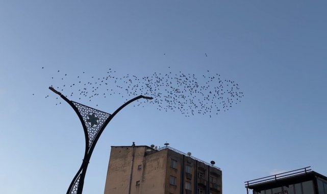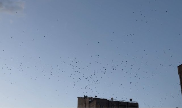 Abdullah Durna isimli vatandaş, "Artık ilkbaharın geldiğini bize söyleyen görüntüler görüyoruz. Şu an Yüksekova semalarında sürü halinde sığırcık kuşlar adeta görsel şölen sunuyor. En ilginç tarafı ise her çatıya sürü halinde konmuşlar. Bizde o güzel manzarayı izliyoruz" dedi.