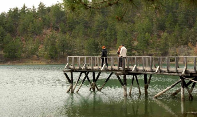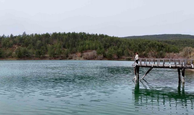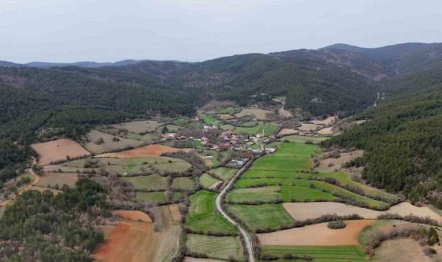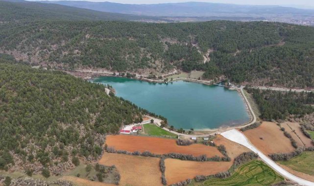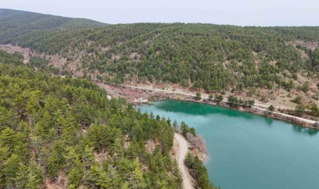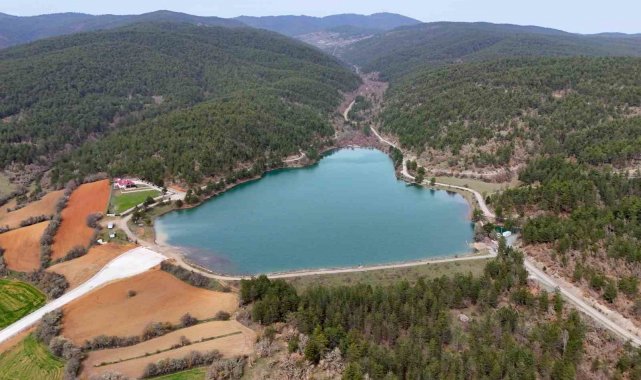 Kastamonu'da baharın gelmesiyle ayrı bir güzelliğe bürünen gölet, köy ve ormanlar havadan görüntülendi.