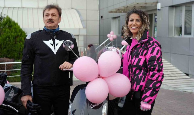 Bahçelievler Belediye Başkanı Bahadır motosiklete bindi, meme kanserine dikkat çekti