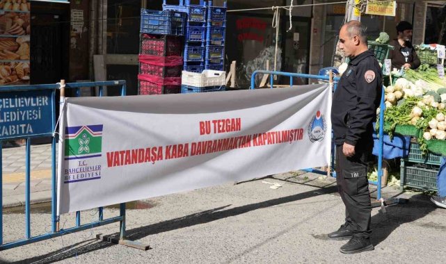 Bahçelievler Belediyesi, vatandaşa kaba davranan ve ürünlerinde yanıltıcı düzenlemeler yapan iki pazarcının tezgahını 15 gün süre ile kapattı. Pazarcı esnafına para cezası kesilirken, kapatılan pazar tezgahlarına pankart asıldı.