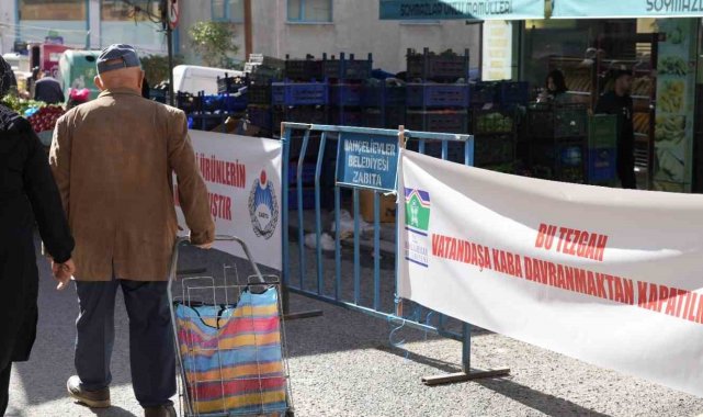 Bahçelievler Belediyesi Zabıta Müdürlüğü ekipleri, ilçe genelinde yürüttüğü pazar denetimlerinde vatandaşların şikayetlerini dinledi. Hürriyet Mahallesi ve Siyavuşpaşa semt pazarlarında rutin kontroller sırasında vatandaşların şikayeti üzerine yapılan inceleme örnek bir uygulamaya dönüştü. Ekipler, Hürriyet Mahallesi'nde bulunan pazar alanında yaptıkları denetimde bir esnafın tezgahın ön kısmına kaliteli ürünleri, arka kısmına ise daha düşük kalitedeki ürünleri yerleştirdiğini tespit etti. Ayrıca pazarcının vatandaşlara karşı kaba davrandığı da belirlendi. Zabıta ekipleri, hem vatandaşlara karşı saygısız tutum hem de ürünlerde yanıltıcı düzenleme nedeniyle pazarcıya 15 gün tezgah kapatma ve idari para cezası uyguladı. Uygulama kapsamında tezgahın bulunduğu alana, "Bu tezgah vatandaşa kaba davranmaktan dolayı kapatılmıştır" ve "Bu tezgahın önündeki ve arkasındaki ürünlerin farklı olmasından dolayı kapatılmıştır" yazılı uyarı pankartları asıldı.