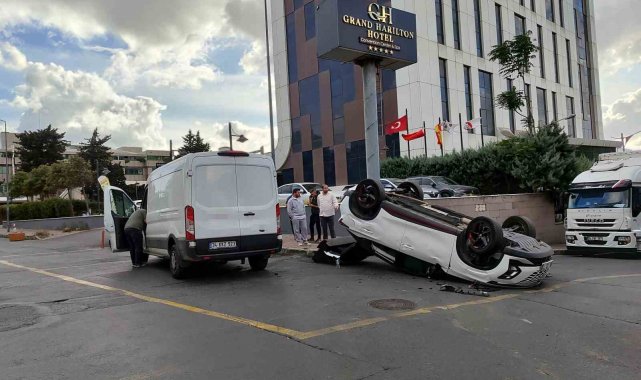 İstanbul Bahçelievler'de hızını alamayan minibüsün çarptığı otomobil takla atıp ters döndü. 2 kişinin hafif şekilde yaralandığı kazada 1 kişi ise yara almadan kurtuldu.