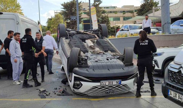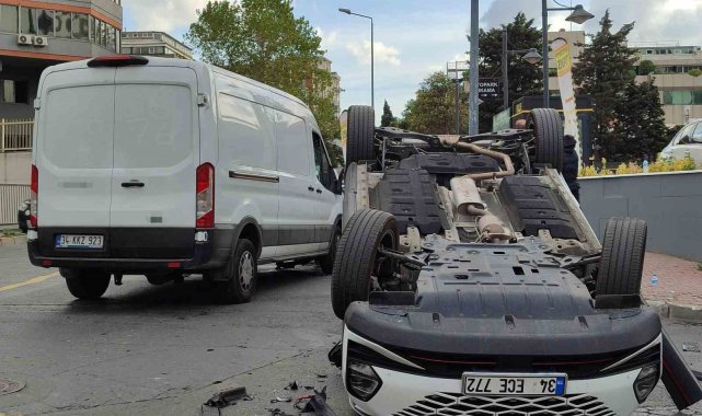 Bahçelievler'de minibüsün çarptığı otomobil ters döndü: 2 yaralı