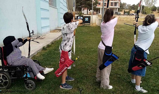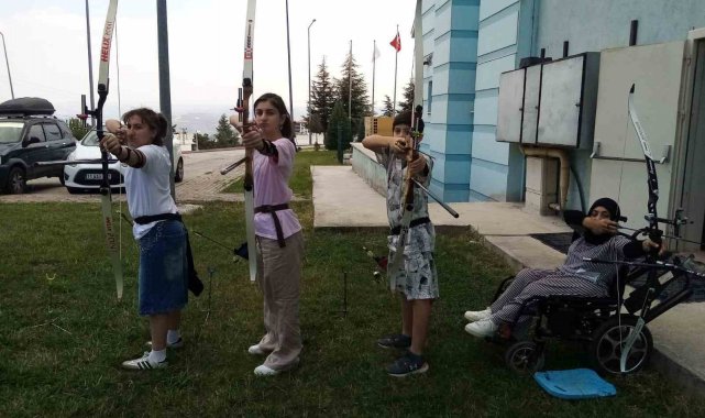 Bilecik Gençlik ve Spor İl Müdürlüğü tarafından yaz okulları kapsamında düzenlenen okçuluk antrenmanları, Bahçelievler Yüzme Havuzu bahçesinde tüm hızıyla devam ediyor.