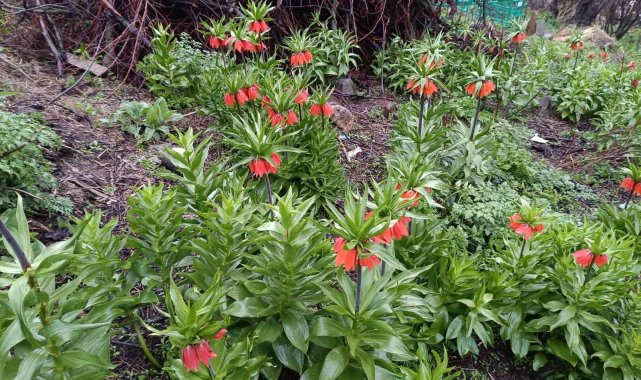 Van'ın Bahçesaray ilçesinde baharın müjdecisi ters laleler açtı. Güzel görüntüler oluşturan ters laleleri koparanlara 244 bin 315 lira para cezası uygulanıyor.