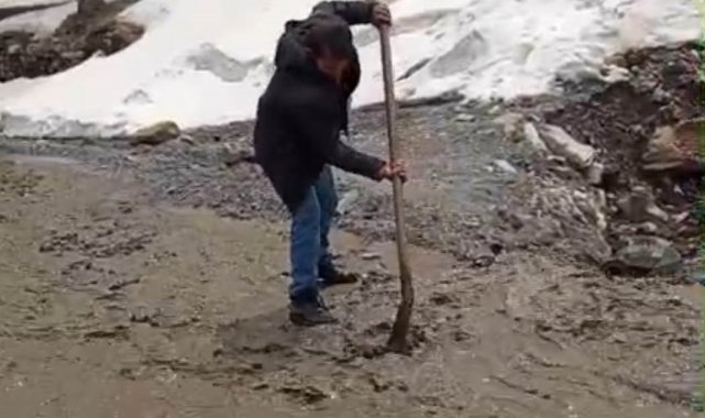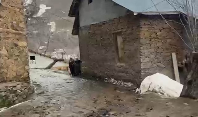 Van'ın Bahçesaray ilçesinde doğa, aynı gün içinde iki farklı yüzünü gösterdi. Karla örtülü dağlar kış mevsimini andırırken, mahallelerde sağanak yağış sele neden oldu.