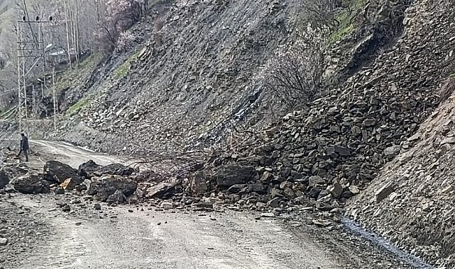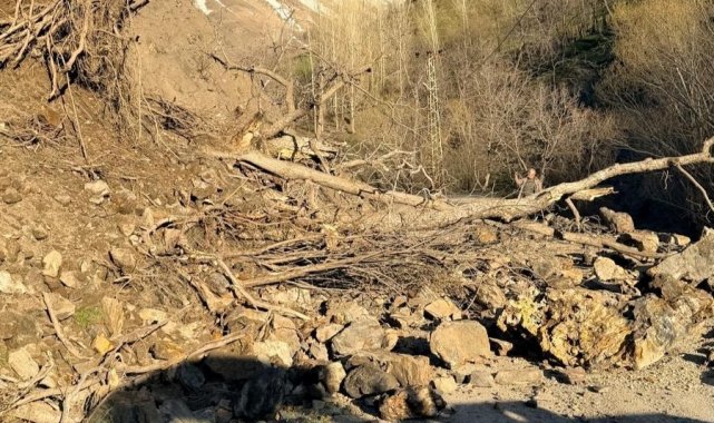 Van'ın Bahçesaray ilçesinde mahalle yoluna dökülen heyelan temizlendi.