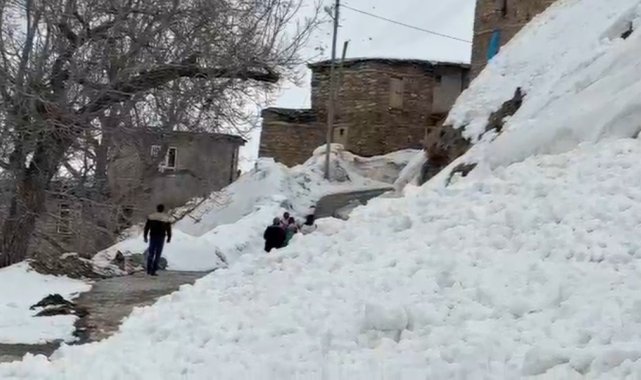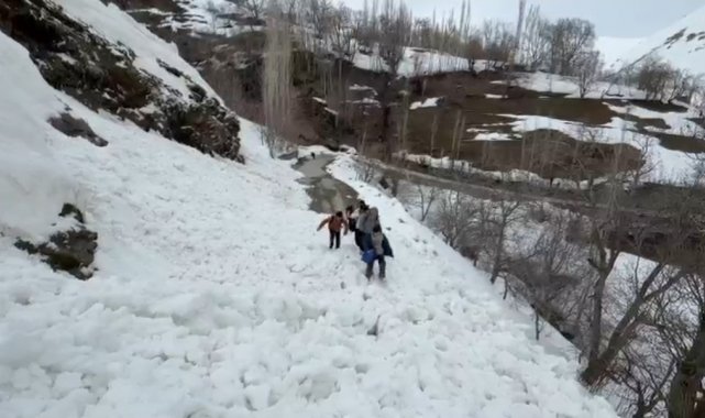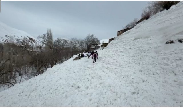 Bahçesaray'da, etkili olan yoğun kar yağışının ardından Çatbayır Mahallesi yoluna çığ düştü.