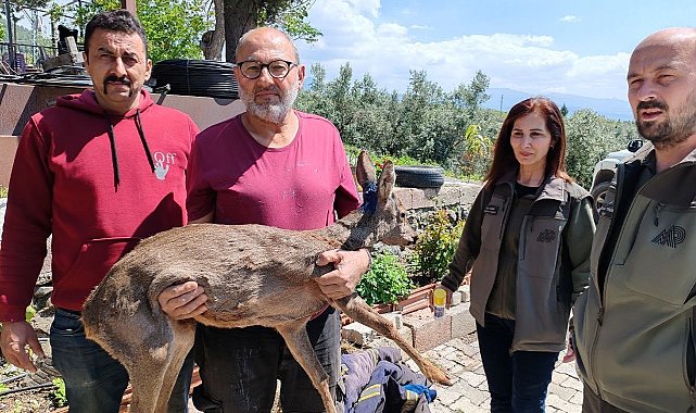 Bahçesinde bulduğu yaralı yavru karacayı ekiplere teslim etti